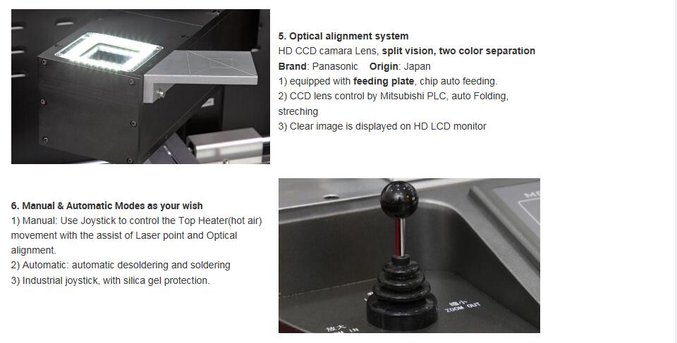 * HD CCD optikai illesztési rendszer a BGA és komponensek pontos felszereléséhez. CCD lencse auto Folding & streching.